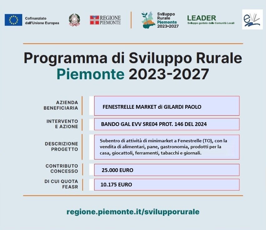 Il negozio è astato avviato con l'aiuto di finanziamento regionale come indicato da tabella